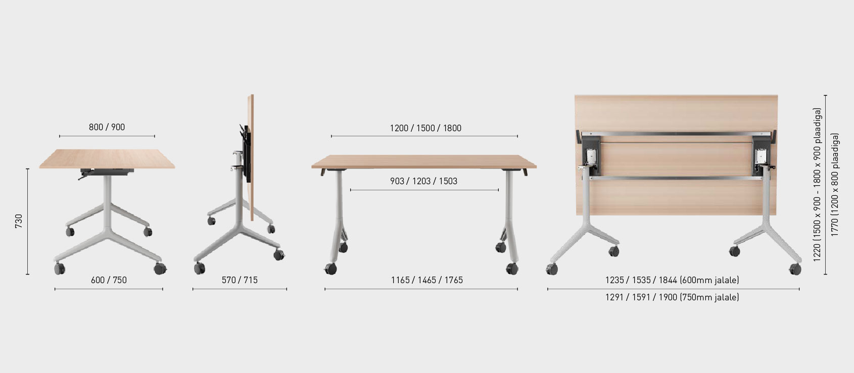 All versions have 2 possible leg depths: 750 mm or 600 mm.